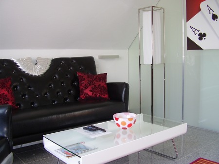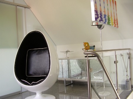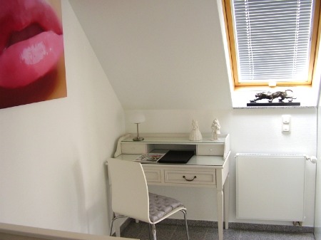 Ruhe und Erholung finden Sie im separaten Lese und Entpannungs - Raum, die Galerie im Obergeschoß. Von hieraus geht es auch auf den Balkon.