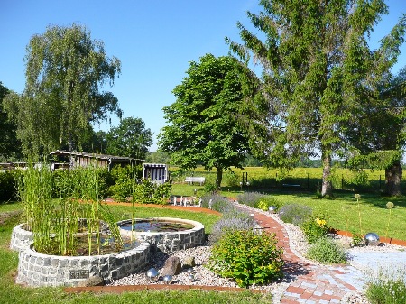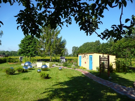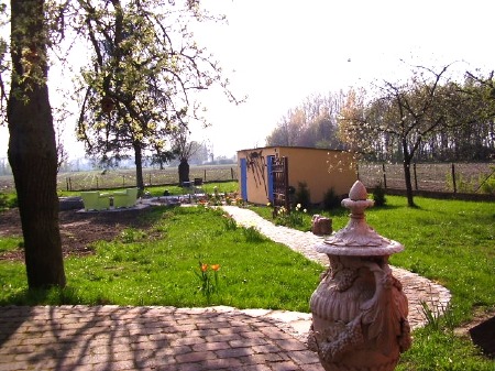 Große Liegewiese ca. 1000 qm hinter dem Haus mit Blick auf´s freie Feld.