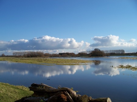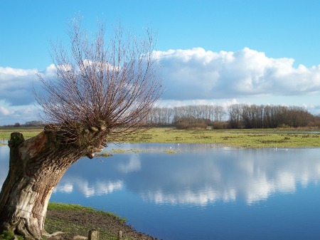 Der Kameruner See hinter dem Elbdeich mit seinen bizarren Kopfweiden